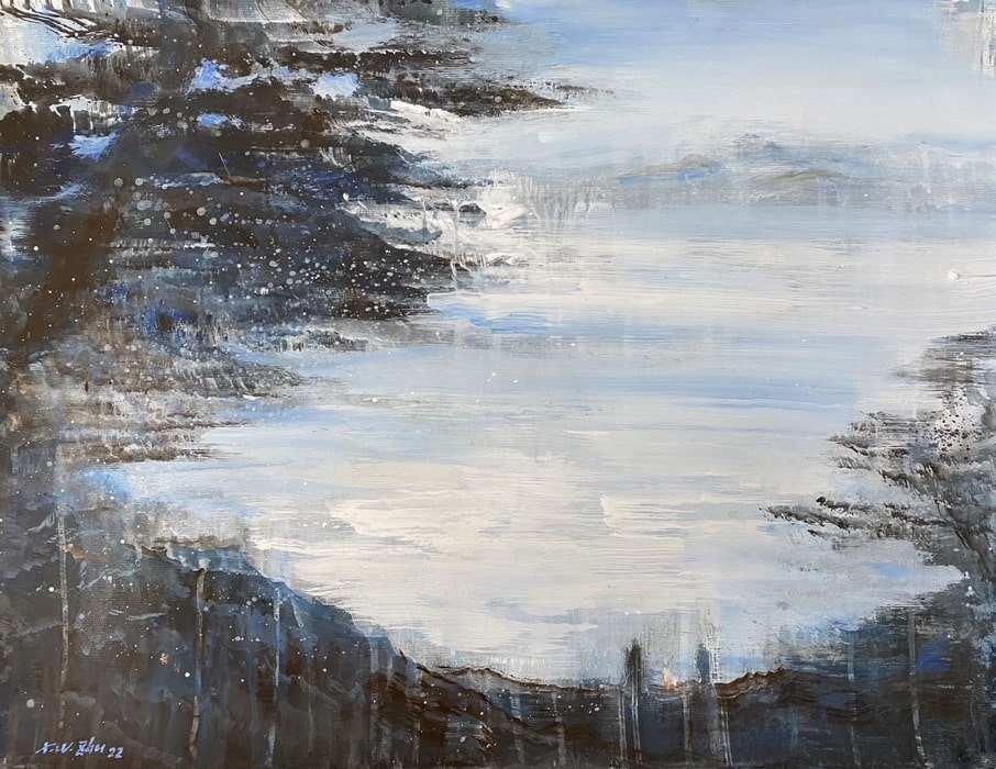 Zhu Xianwei is considered one of the most interesting landscape painters in recent years. With his spontaneous strokes, he combines the ideal of the soul landscape in the sense of the German Romanticism, with the philosophical insights of Zen philosophy: Mountain and river become one, in order to join again in the inner image of the viewer to the overall view. Finding inspiration from the Danube in Europe or the Chinese mountains, the Chinese-German painter evokes classical times to explore and secure his two binding cultural spaces. It is about home in a globalized reality.