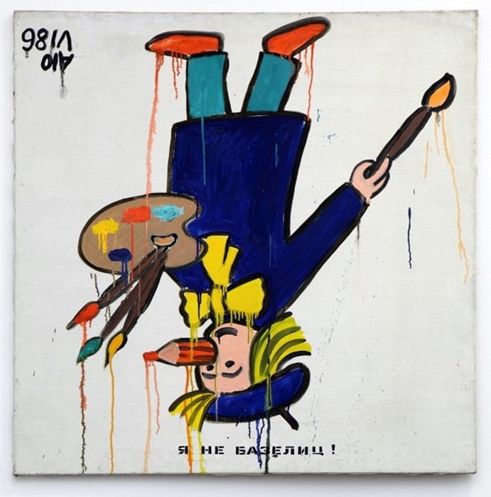 Image caption: Yuri Albert, I Am Not Baselitz, acrylic on canvas, 100 x 100 cm, © the artist