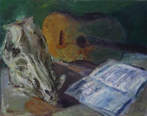 Image caption: Gudrun Brüne · Stilleben mit Tierschädel · Öl auf Hartfaser · 60 x 80 cm