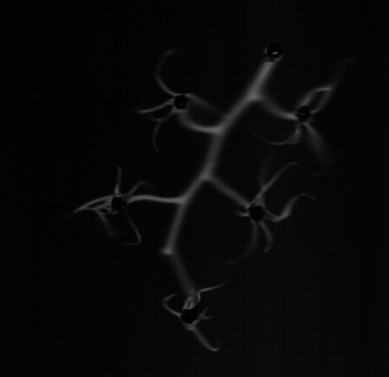 A melancholic melody filters out from the exhibition « I’m a passenger ». It sketches a haunted portrait of our interior demons, the outline of a murky dream vibrating between violet purple and deep black.