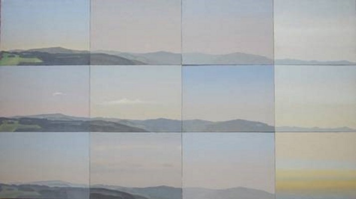 Image caption: Peter Dreher, Schöne Tage im Hochschwarzwald, 1999, oil on cardboard on wood, 72 x 130 cm, courtesy WAGNER + PARTNER