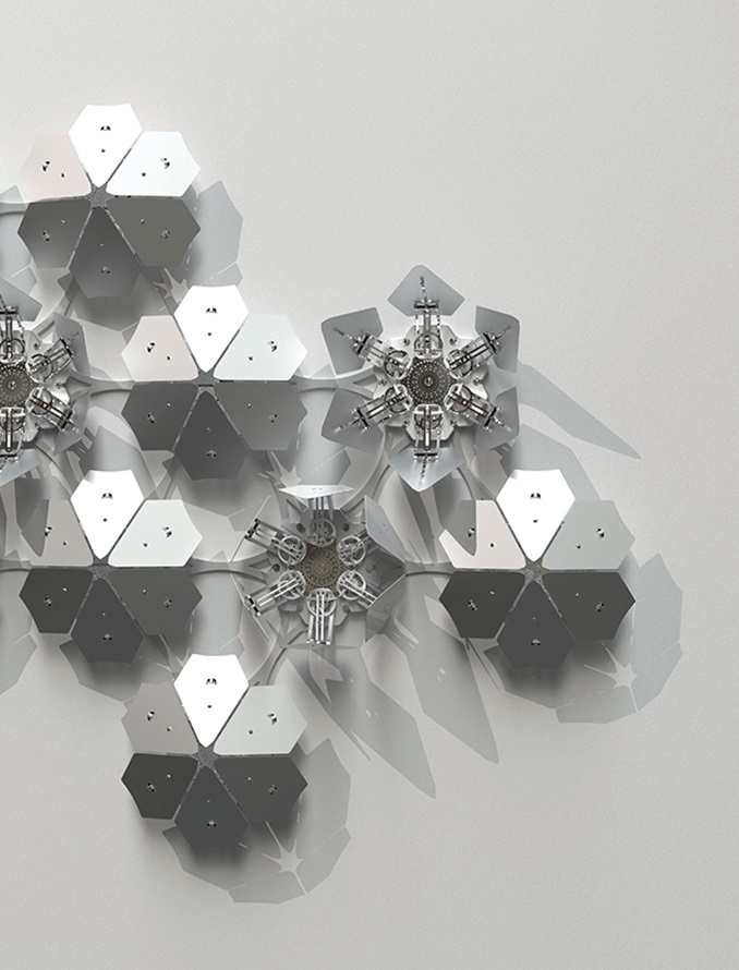The collective known as WHYIXD explore memory and imagination by presenting the essence of nature in a dynamic dialogue with the viewer. Inspired by the resilient life of the mountains, the artwork symbolizes eternity as an evolving organic entity. Mimicking azaleas and drawing inspiration from mosaics and eternity knots, the pieces suggest eternal existence through interlocking geometric forms.