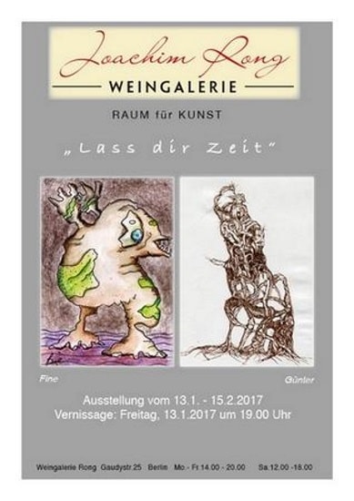 until 15.02. | #1028ARTatBerlin | Joachim Rong Weingalerie shows from 13th January 2017 the exhibiton “Lass dir Zeit” with works by the artist Günter Krauke and Fine.