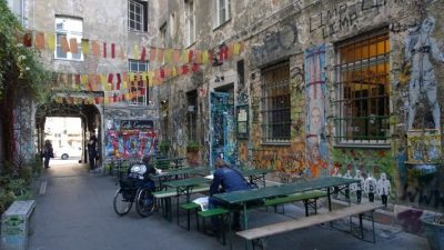 On the photo you can see the entrance area to the courtyards with a view to Rosenthaler Straße in Berlin-Mitte.