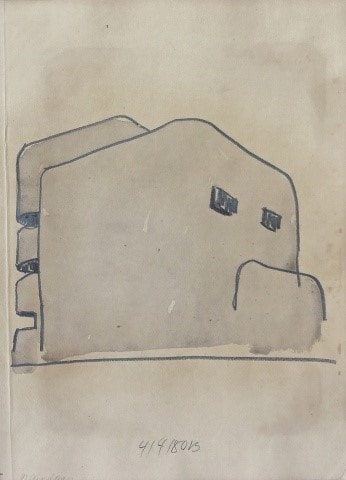 In terms of their form, Joachim Bandau’s bunker drawings are both surprising and fascinating. Conceived as a „survival machine“, as both foxhole and firing range, the bunker in Bandau’s drawings is more than a prototype of instrumental architecture. It appears as a contradictory hybrid, archaic and yet modern. In reality a kind of fortification, Bandau’s bunkers are like sculptures with strange anthropomorphic features.