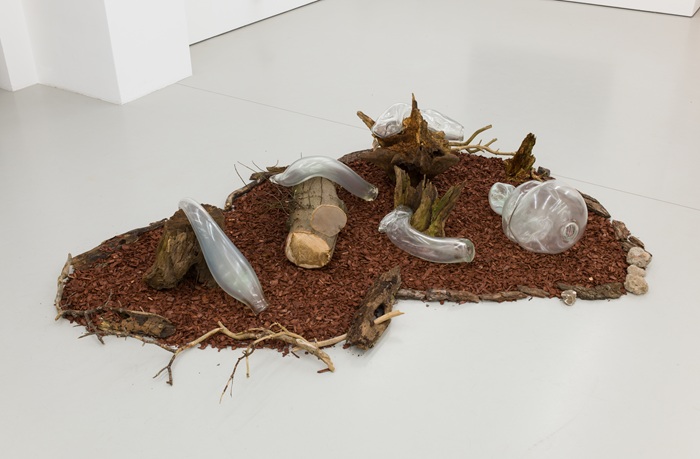 Anne Duk Hee Jordan‘s works unfold post-anthropocene scenarios in which non-human beings take centre stage to reflect on the intersections of art, science, society and identity. Jordan examines the impact of technology on nature and questions how it shapes our relationship to the world, to other living beings and to each other. Upon entering the gallery, visitors encounter “Slippy Slimy Slug”, an installation of kinetic robot leaves, glass sculptures, bark mulch, tree trunks and branches. In the middle of this hybrid landscape of organic and artificial elements, glass slugs crawl, thematising the reproductive behaviour of these animals. Jordan questions Western, patriarchal norms of our understanding of sex and draws attention to the diversity and survival strategies of the non-human world. Snails, which have male and female reproductive organs and possess telepathic and electromagnetic abilities, become symbols of alternative forms of kinship and connection.