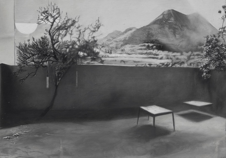 The paintings in the exhibition are arranged like a film, alternating staged compositions that drive the plot forward with images from areas as diverse as geological phenomena, everyday environments and internet culture. García Torres tells a story of representation, re-enactment, disappearance and appropriation that extends into the present day, exploring the illusory and the uncertain of the past and transporting it into the complicated present in a self-reflexive practice.