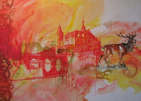 Image caption: Andreas Amrhein, Everybody learns from disaster, 2010, Acryl auf Leinwand, # 140 x 200 cm