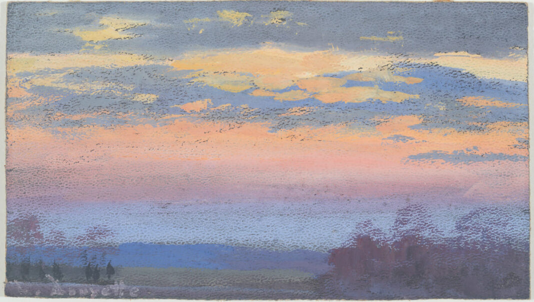 Fig. above: Louis Douzette, Evening sky over a landscape, gouache, Photo: Christoph Müller Foundation / Kilian Beutel