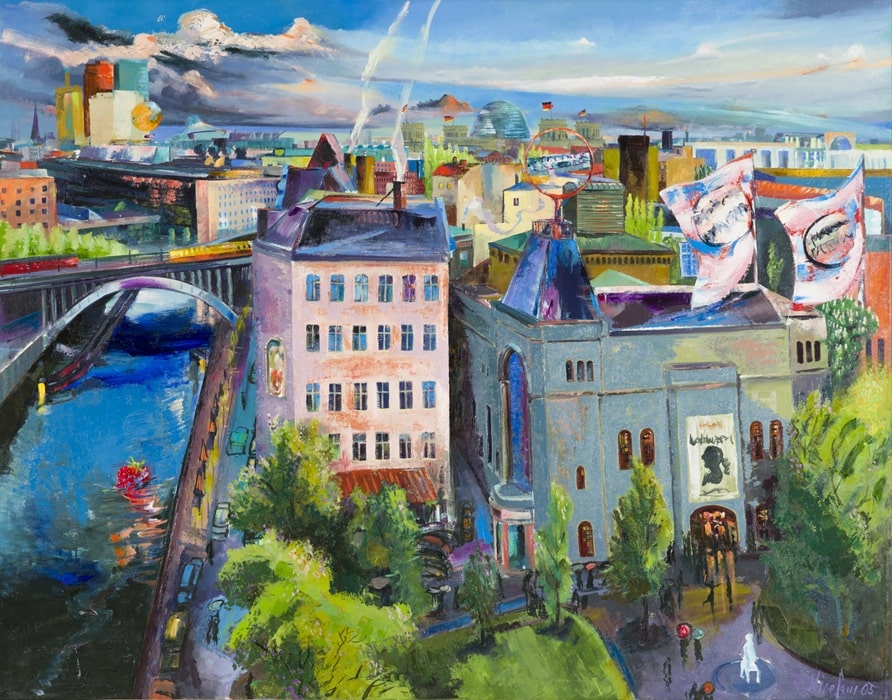 Image above: Roland Nicolaus, Berliner Ensemble am Schiffbauerdamm – Panoramaansicht Berlin, 2005, Öl auf Leinwand 145 x 185 cm, Kunstsammlung der Berliner Volksbank K 1440 © Roland Nicolaus, Foto: Peter Adamik.