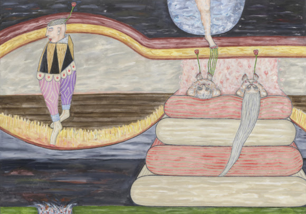His paintings reflect both the absurdity of everyday life and mythical dimensions drawn from fairy tales, memories, and the “eternal cycle.” After the thought-laden years of minimalism and conceptual art, his humour still resonates as a liberating gesture.
