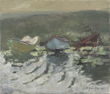 Image caption: Rolf Händler, Drei Boote, 1985, Öl auf Leinwand, 30 x 35 cm
