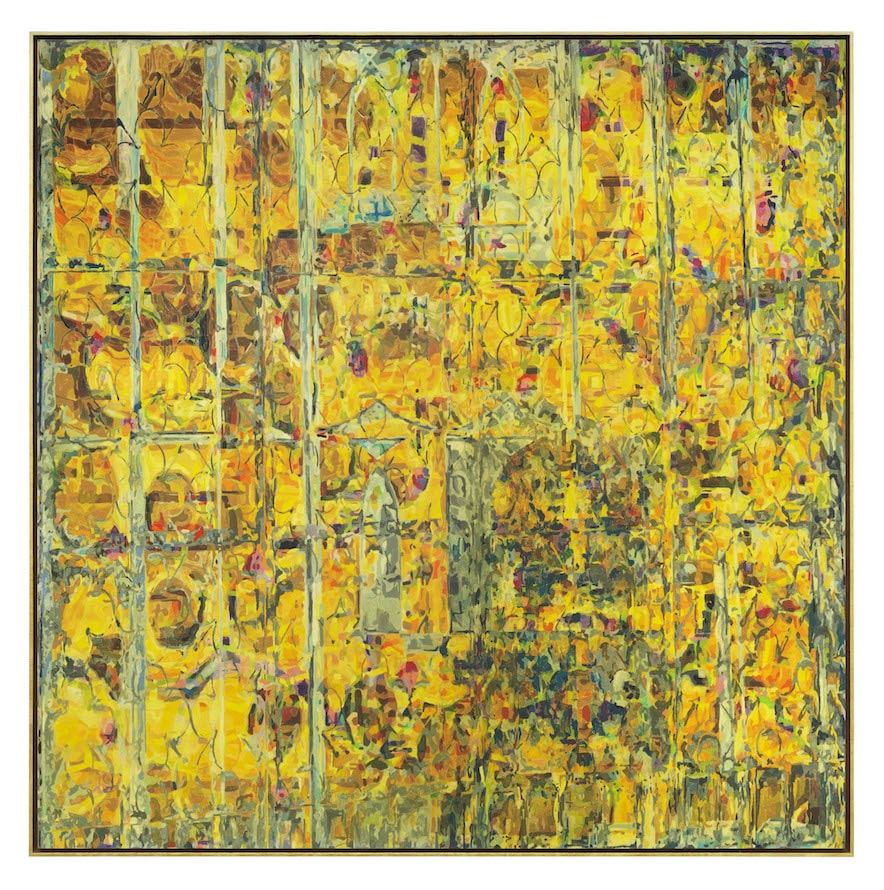 A suite of large-scale paintings on laser-etched MDF fuses a wealth of visual material, ranging from photographs of found window bars, to everyday cell-phone screenshots and artwork reproductions. Digital manipulations of these sources are overlaid in layered compositions, their subjects transformed into near-painterly motifs, allowing the once-representative to become parts of a cohesive whole. Here, Pardo takes barriers designed to tangibly divide worlds, and deploys them as structural framing devices for a multifaceted, additive imagemaking process.
