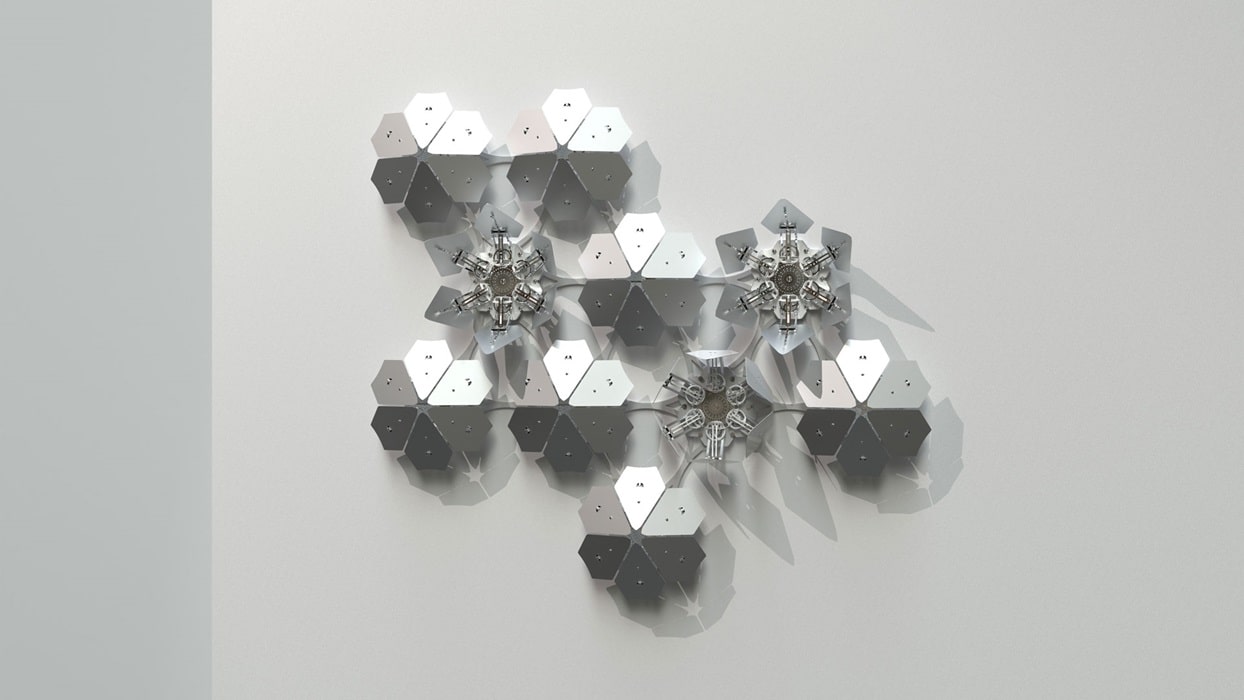 Mechanische Blumen mit verborgenen Metalladern öffnen und schließen sich, simulieren die Jahreszeiten und schaffen ein elegantes Raum-Zeit-Kontinuum. Diese Mischung aus mathematischer Präzision und organischem Fluss zieht den Betrachter in den Bann und verwandelt das Mechanische in ein scheinbar lebendiges Wesen.
