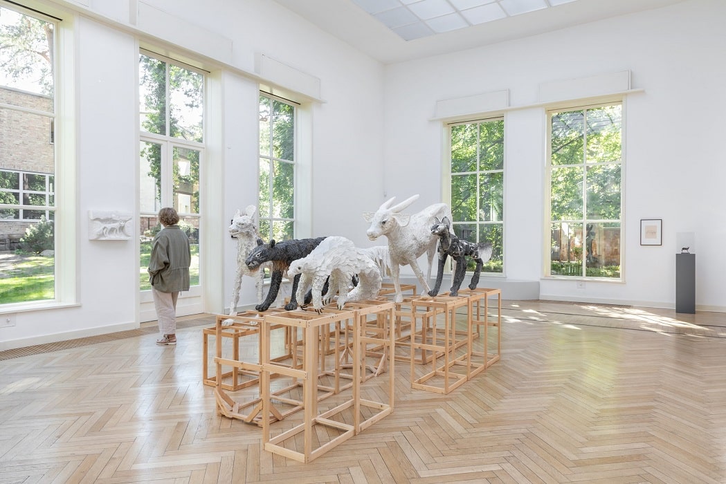 Abb. oben: Ausstellungsansicht “Lin May Saeed. Im Paradies fällt der Schnee langsam. Ein Dialog mit Renée Sintenis” Georg Kolbe Museum, 2023, Foto: Enric Duch