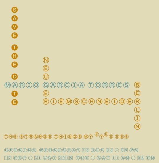 bis 31.10. | #0152ARTatBerlin | neugerriemschneider Berlin zeigt vom 17. September bis zum 31. Oktober 2015 Arbeiten von Mario García Torres im Rahmen der Ausstellung „THE STRANGE THINGS MY EYES SEE“.