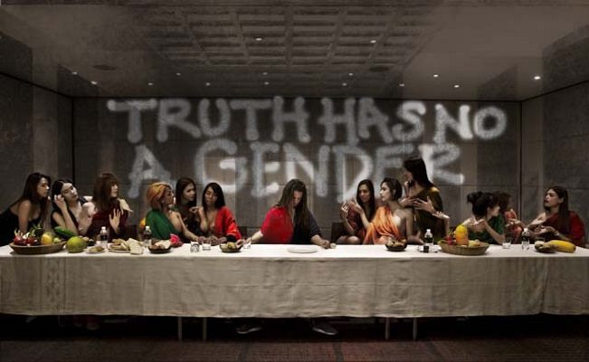 Ausgangspunkt von ‚Naked Truth‘ ist Leonardo da Vincis berühmtes Abendmahl, welches die beiden auf ungewöhnliche Weise neu inszenierten. Während mehrfacher Reisen nach Bangkok casteten BeckerHarrison prostituierte thailändische Ladyboys, um die Positionen von Jesus von Nazareth und seinen Aposteln sukzessive neu zu besetzen. Das Ergebnis ist ein delikates Spiel zwischen der Neuinterpretation einer kunsthistorischen Inkunabel und einem sehr persönlichen Kommentar zur aktuellen Genderdiskussion. Süffisant referiert Carolin Becker auf den häufigen Rückgriff auf Prostituierte als Modelle in der christlich-abendländischen Kunstgeschichte.