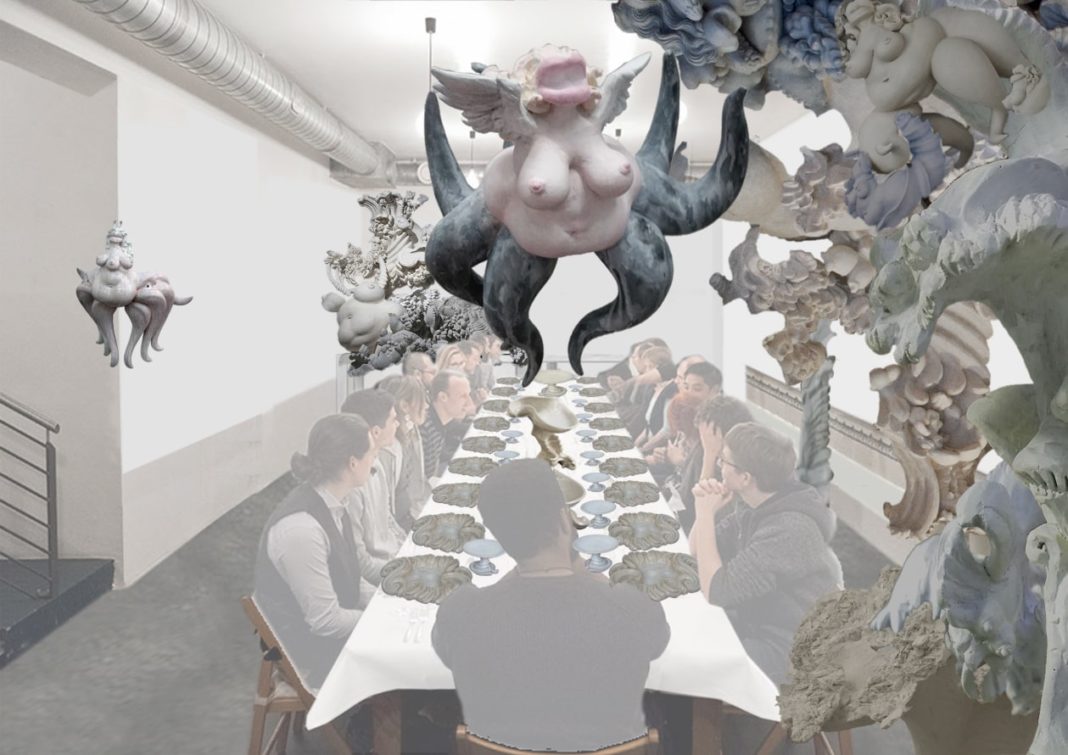 Am 25. Februar 2022 eröffnet bei Zagreus Projekt in Berlin-Mitte die Ausstellung “Meerschaum-Gewoge” mit Skulpturen und Keramiken der Künstlerin Miriam Lenk. Die Ausstellung wird wie üblich von einem Menü begleitet, das stets in Abstimmung und Kreation mit den jeweiligen Künstler:innen vom Koch und Galeristen Ulrich Krauss erarbeitet wird. Miriam Lenk und Ulrich Kraus bündeln ihre Kräfte für dieses opulente Festmahl, an dem man im Monat März teilnehmen kann. Die Ausstellung ist während der Laufzeit jederzeit nach Vereinbarung zu besuchen.