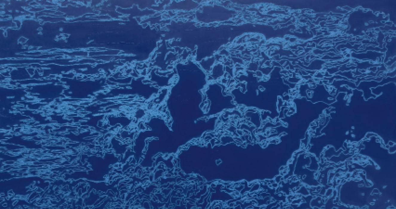 Ihre Motive fängt die Künstlerin auf unmittelbare Weise ein — mittels eines der ersten fotograschen Verfahren, der Cyanotypie*, die sie direkt in der Natur fertigt. Obwohl dieses Verfahren der Künstlerin lediglich zur Motivndung dient und die Cyanotypien stets weiterverarbeitet werden, stellt der Herstellungsprozess an sich — das Auftragen der sich durch Sonneneinstrahlung blau färbenden chemischen Substanz mittels eines Pinsels — bereits den Übergang zur Malerei her. Blau als wiederkehrende Farbe in Heinzels Werk verweist damit auch auf diesen analog-fotograschen Schritt innerhalb ihres phasenreichen Schaffensprozesses.
