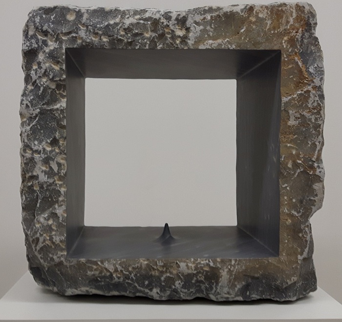 Peter Rosenzweig – Omphalos (dt: Nabel der Welt), 2017, Bardiglio (grauer Marmor) , 51 x 51 x 35 cm