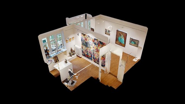 GALLERY VISIT – Virtueller Rundgang durch die Ausstellung „Malerei“ der Künstlerin Bettina Moras in der Galerie mutare sowie einer Gruppenausstellung mit den Künstlern Caro Stark, Tamim Sibai und Filip Kalkowski in Galerieraum 2 als 360Grad Panorama