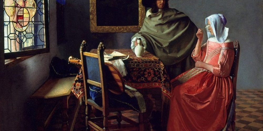 mehr lesenDas Glas Wein – Jan Vermeer van Delft Der Blick fällt in einen Raum, der mit einem Tisch, einer Bank und zwei Stühlen möbliert ist. Der Tisch ist mit einer aufwändig gefertigten bunten Tischdecke bedeckt, an der Wand hängt ein Gemälde in einem goldenen Rahmen. Auf einem der Stühle vis-à-vis zum Fenster, dessen bleiverglaster Flügel […]