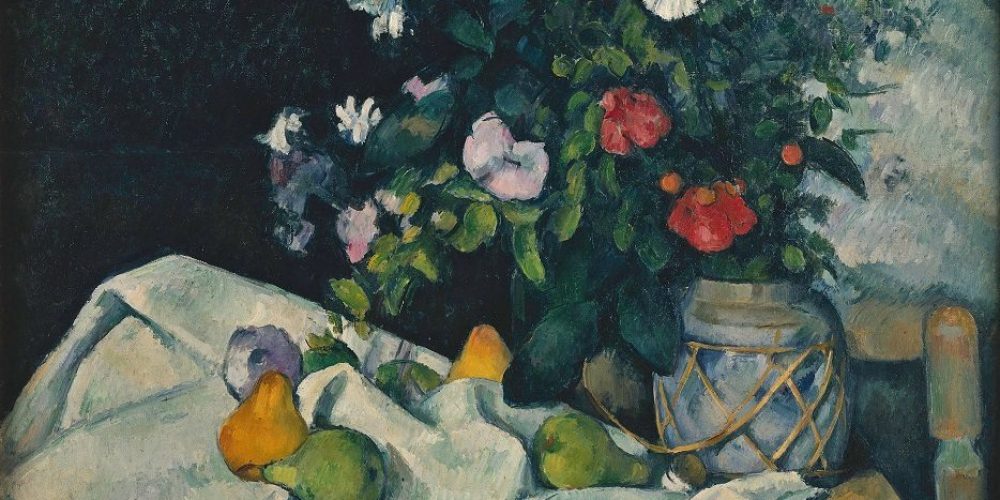 mehr lesenStillleben mit Blumen und Früchten – Paul Cézanne Ein hölzerner Tisch, darauf ein zusammengerafftes weißes Tischtuch, auf dem wie hingeworfen gelbe und grüne Birnen liegen, am rechten Tischrand ein lichtblaues umflochtenes Glasgefäß mit Henkel, in dem ein üppiger Sommerblumenstrauß aus rotem Mohn, weißen Margeriten und anderen Gartenblumen steht. Auffällig ist die Zweiteilung des Hintergrundes in einen […]
