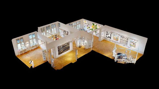 GALLERY VISIT – Virtueller Rundgang durch die Gruppenausstellung „stofflich …“  in der Galerie SCHMALFUSS BERLIN als 360 Grad Panorama: