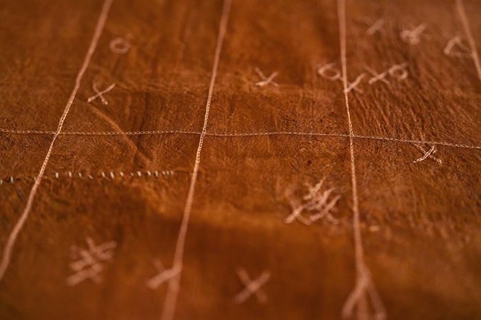 Marcia Harvey Isaksson, Kiruna to Kimberley, bark cloth, crocheted copper thread, 182 x 276 cm (Photocredit: Hilla Aspman)