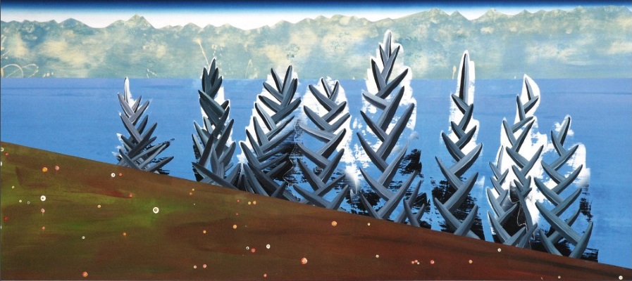 Bildunterschrift: Thomas Fischer „Mäßiges Heimweh“ (Ausschnitt), 2014, Mischt./Sperrholz, 71 x 170 cm