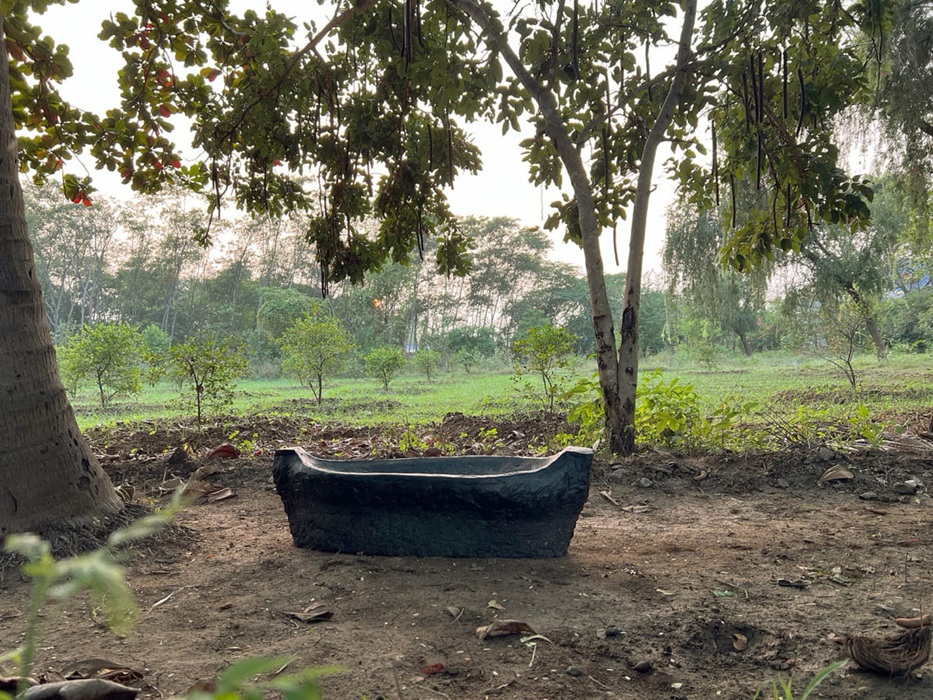 Bildunterschrift Titel: Wolfgang Laib, Schiff, 2024, Indian granite, 41 (h) x 42 x 155 cm, / 16¼ (h) x 16½ x 61 in