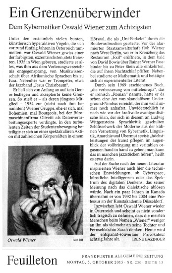 Hier ein interessanter Feuilleton-Artikel über den vielseitigen Oswald Wiener, Vater von Fernsehköchin Sarah Wiener, zum 80. Geburtstag.