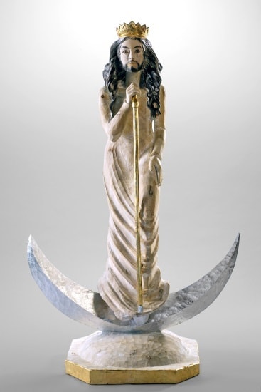 Inspiriert vom Sieg beim 59. Eurovision Song Contest 2014 in Kopenhagen hat Gerhard Goder Conchita Wurst – eine Kunstfigur des österreichischen Sängers Thomas Neuwirth – in der Tradition katholischer Heiligendarstellungen, etwa der „Heiligen Kümmernis“ porträtiert. Diese soll von Gott durch Bartwuchs vor einer ungewollten Ehe bewahrt worden sein. Ikonografisch erinnert Goders Darstellung auch an die sog. Mondsichelmadonnen, einem seit dem 16. Jahrhundert populären christlichen Bildtypus, der die Muttergottes mit dem Jesuskind auf einer Mondsichel stehend zeigt. Die androgyne Erscheinung der Skulptur entspricht der Aussage von Conchita Wurst, sie sei ein schöner Mann und eine schöne Frau in einer Person und das Publikum sei die sie anstrahlende Sonne.